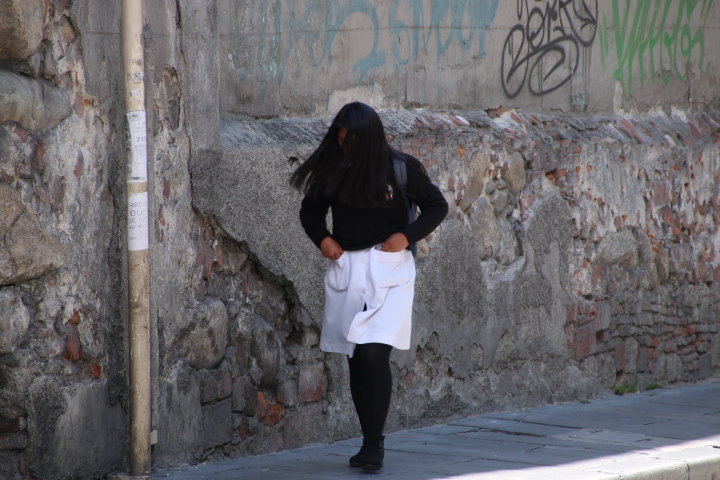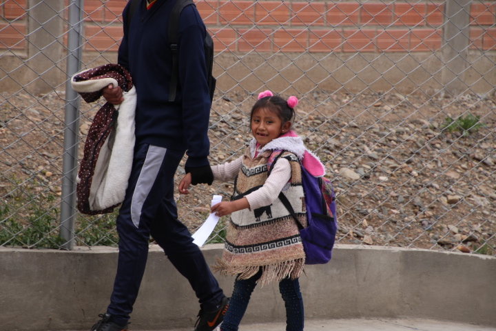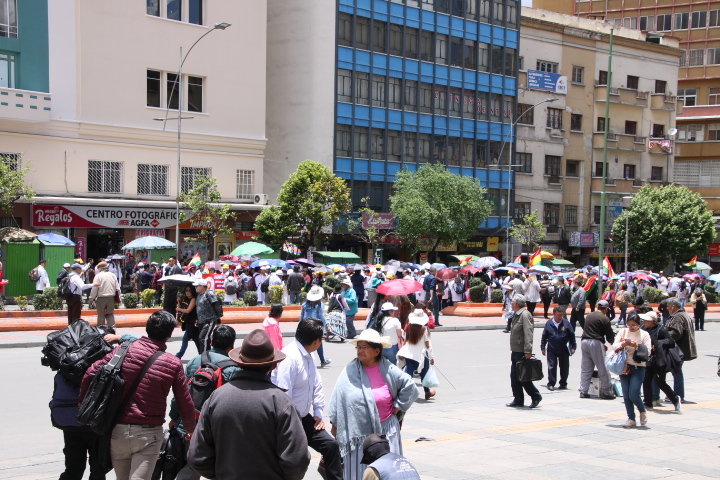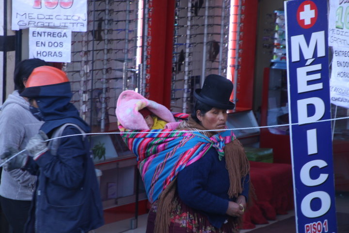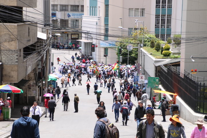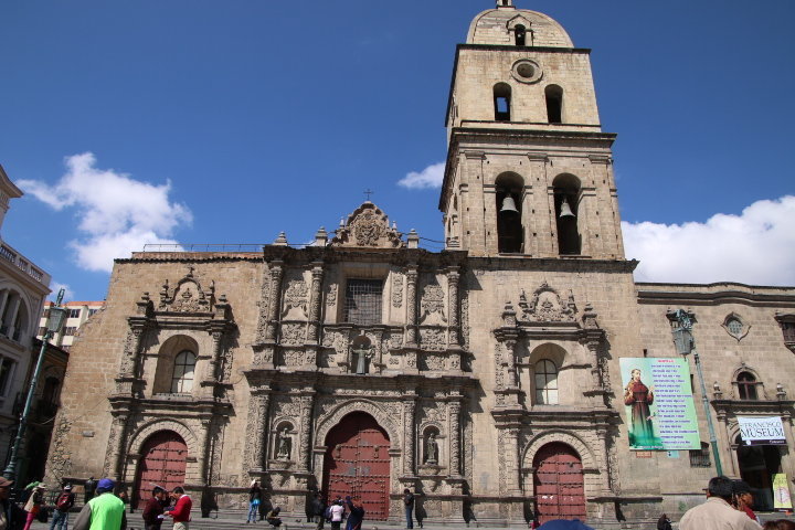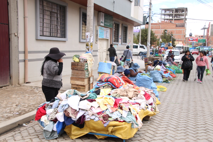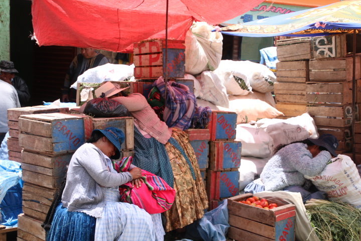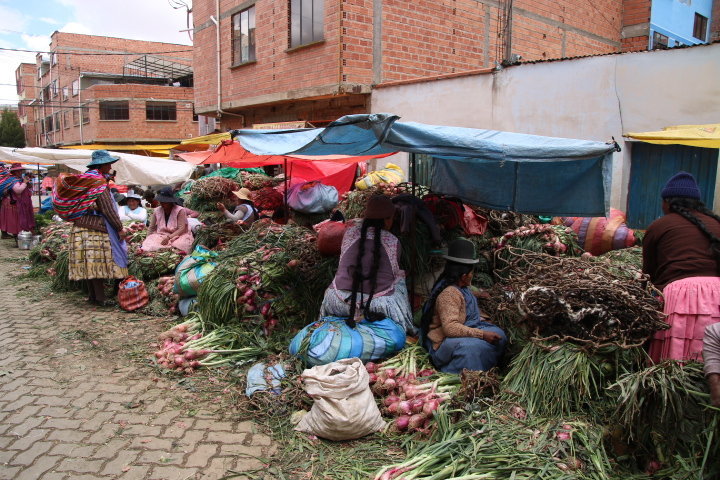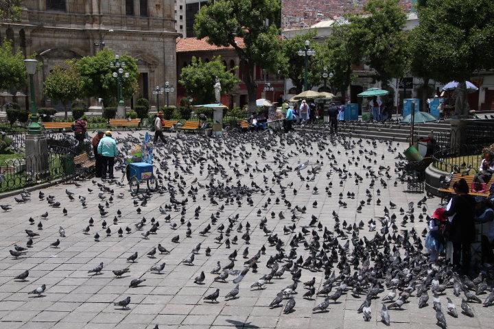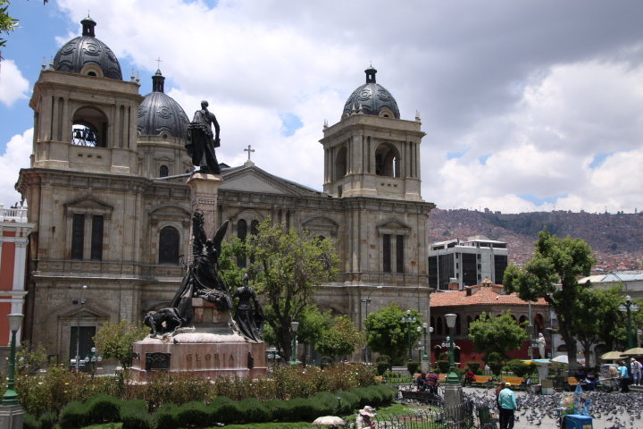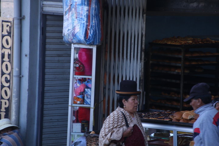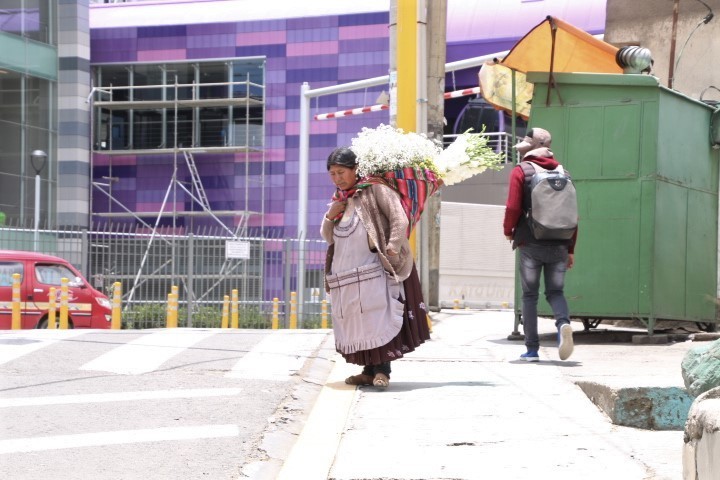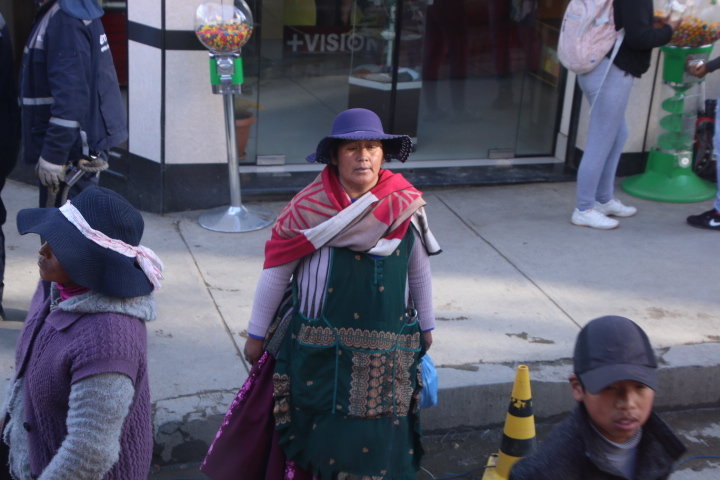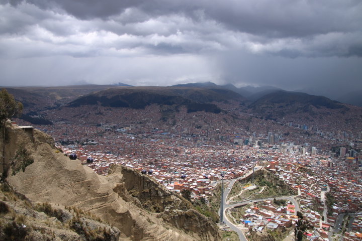 L’arrivée à la Paz se fait par une grande avenue bordée de portions de voies en travaux. Les maisons en briques rouges achevées ou en cours de construction ou à l’abandon couvrent les bords de l’avenue. Nous arrivons par El Alto, zone de migrants à la recherche de travail.